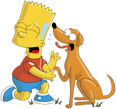 O Bart Simpson possui um cachorro chamado "Ajudante de Papai Noel". Um nome bem longo, não? Algumas pessoas afirmam que o Bart Simpson é do mal, mas quando eu o vejo brincando com o seu cachorro, eu penso: Ele não pode ser do mal. Eu acho que qualquer um que tenha sensibilidade o suficiente para amar um cão, não pode ser do mal. O Bart Simpson só é um arruaceiro. Mas do mal, pelo que eu tenho visto, ele com certeza não é.